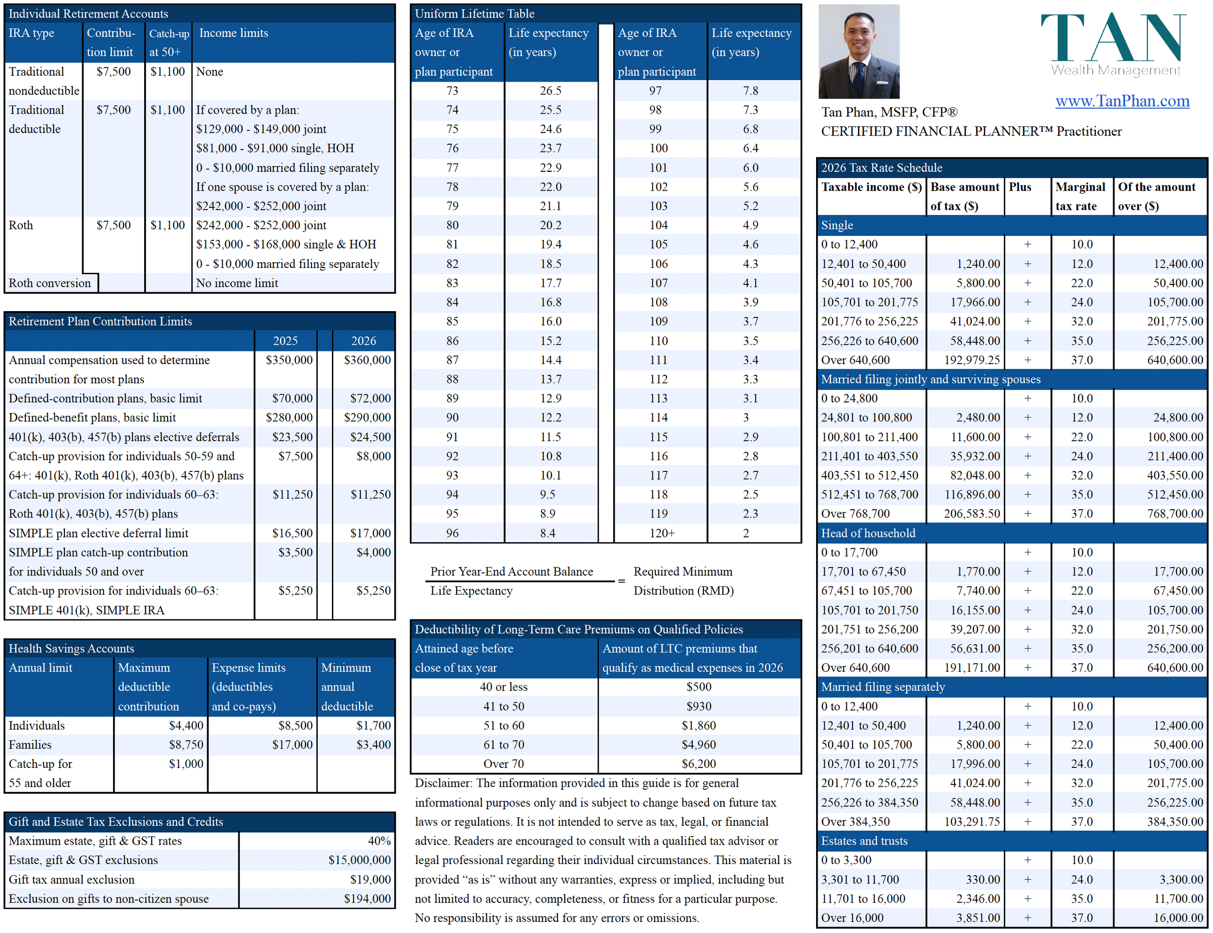 Hi everyone, my name is Tan, and I am an independent CERTIFIED FINANCIAL PLANNER™ practitioner at TAN Wealth Management. Today’s educational video is a sneak peek of the tax guide and resources for 2026 and a more detailed article is on my website at tanphan.com.